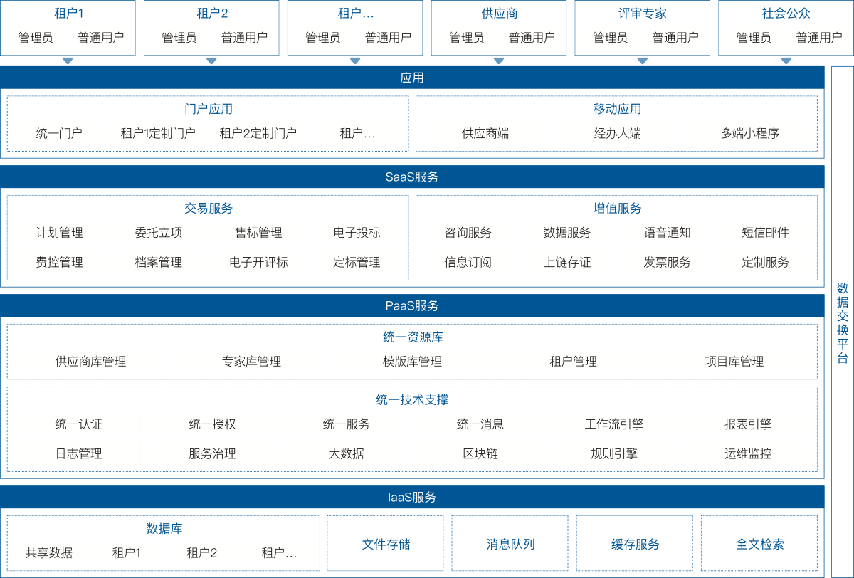 第三方交易運(yùn)營平臺(tái)是公司著力打造以交易運(yùn)營服務(wù)為基礎(chǔ)的電子招投標(biāo)平臺(tái)。客戶通過該平臺(tái)可為租戶提供采購交易、信息訂閱、增值服務(wù)、供應(yīng)鏈金融、業(yè)務(wù)咨詢等服務(wù)。